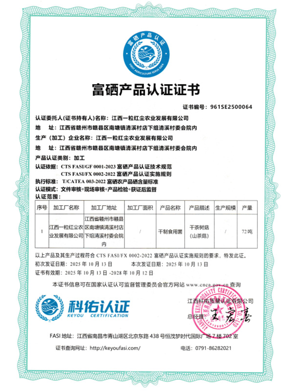 江西一粒紅塵農業發展有限公司是一家總部位于江西省贛縣的現代農業多元型企業,專注于食用菌的研發種植、深加工、貿易、研教培、農文旅等全產業鏈發展。公司秉承“健康、綠色、共享、共贏”的核心價值觀,致力于引領鄉村振興之路,旨在成為......